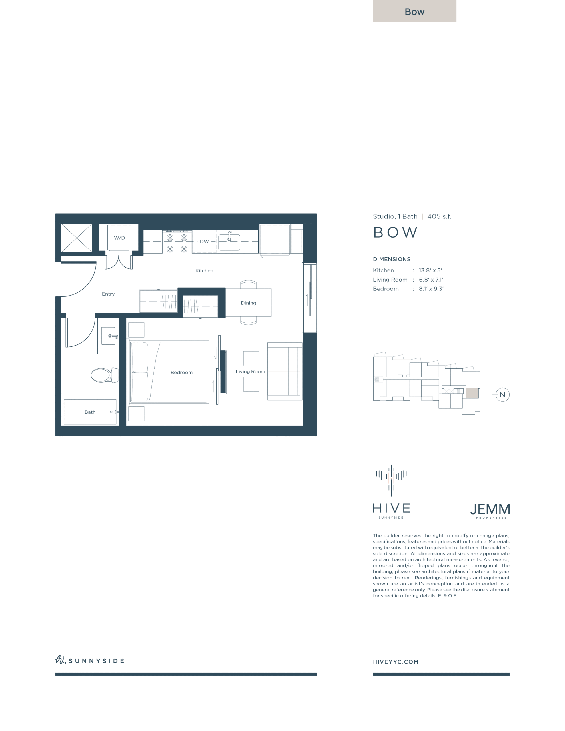 Studio / 1 Bath - 405 s.f.